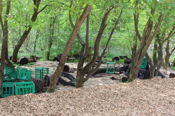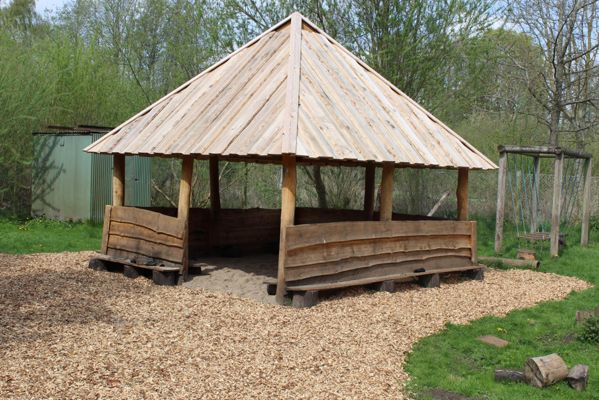 Vi har en naturlegeplads hvor vi har en bålhytte.