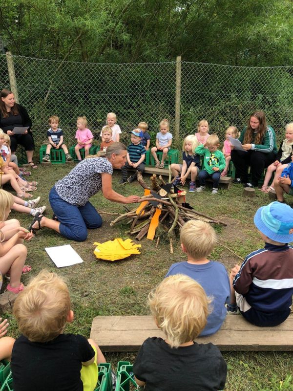 Vi indretter vores læringsmiljøer udenfor fra april til oktober og fra oktober til april indrettes læringsmiljøerne indenfor.